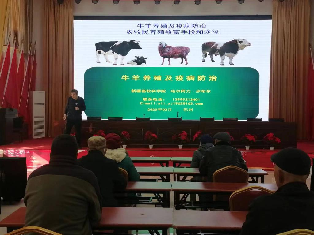 2月28日,博湖縣邀請新疆畜牧科學院專家哈爾阿力·沙布爾研究員到博湖縣三個村,開展了牛羊養殖及疫病防治專題講座及技術指導。