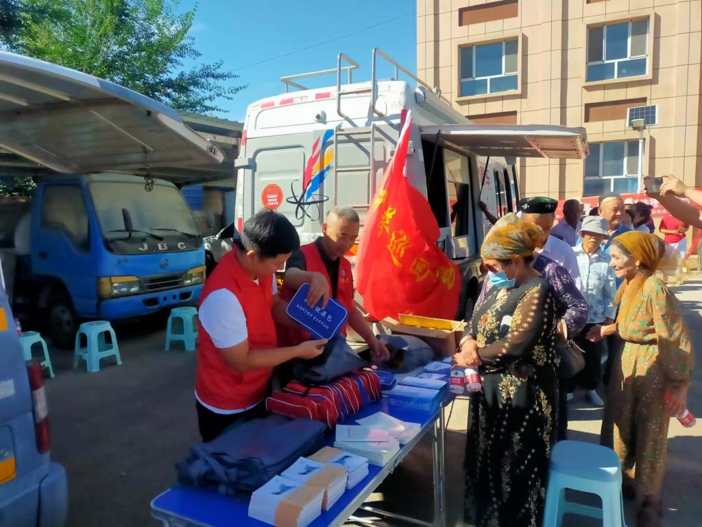 活動現場,州縣科普工作隊員為群眾播放科普宣傳片,并發放了科普書籍300余冊,發放印有“科普中國”二維碼的手提袋、餐巾紙盒的科普宣傳品200個。此外,醫療隊的醫生們為群眾免費測量血壓、血糖,發放藥品,普及常見病的防治和養生知識,倡導群眾合理飲食、健康生活、注重保健,提高生活質量。
