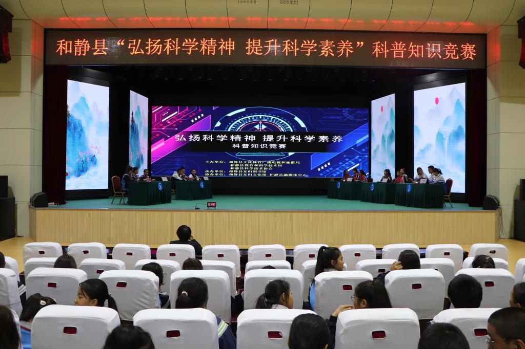 9月28日上午,和靜縣文化體育廣播電視和旅游局、和靜縣教育和科學技術局、和靜縣科學技術協會聯合舉辦“弘揚科學精神 提升科學素養”科普知識競賽,共有來自和靜縣五所學校的15名同學參賽,300余名師生觀看比賽。