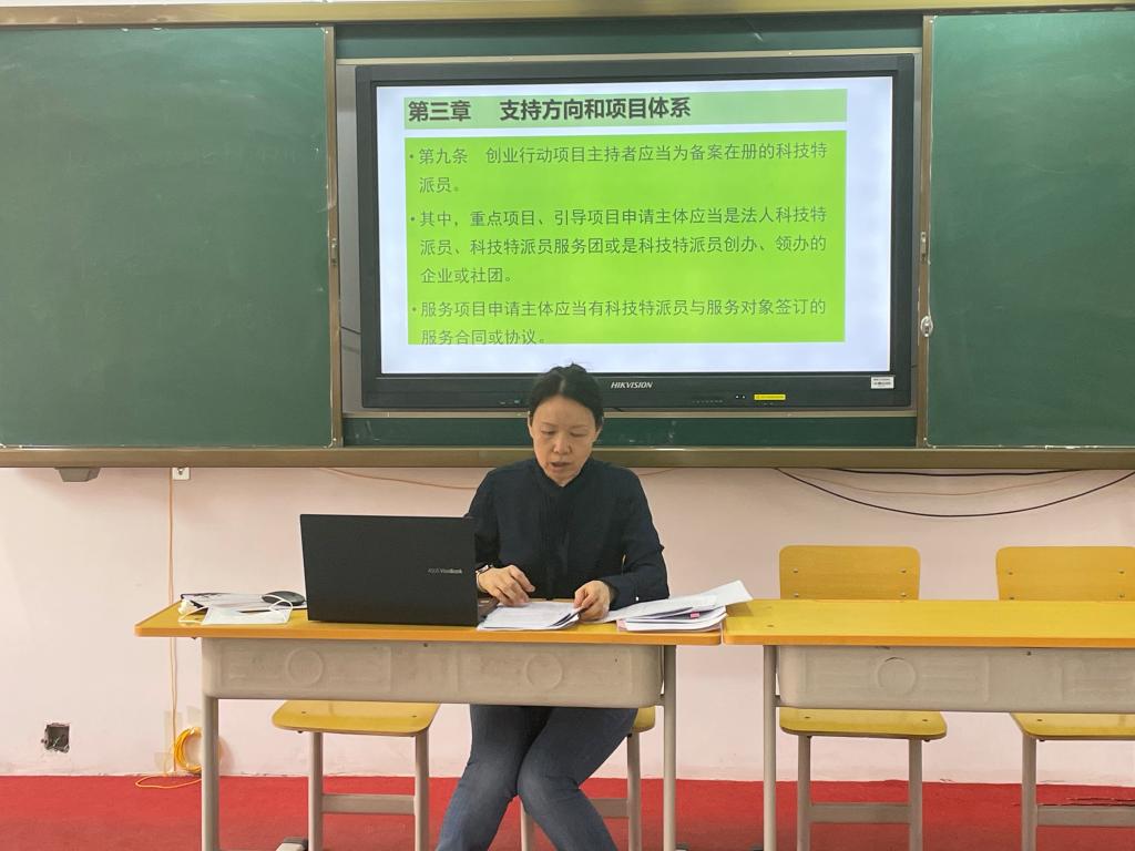 烏蘇市教科局二級(jí)主任科員黃戰(zhàn)同志解讀文件《新疆維吾爾自治區(qū)科技特派員農(nóng)村科技創(chuàng)業(yè)行動(dòng)項(xiàng)目管理辦法(試行)》,結(jié)合烏蘇市教科局、市科協(xié)歷年來(lái)科技特派員農(nóng)村科技創(chuàng)業(yè)行動(dòng)項(xiàng)目申報(bào)與實(shí)施情況,從什么是科技特派員、如何注冊(cè)成為科技特派員、科技特派員農(nóng)村科技創(chuàng)業(yè)行動(dòng)項(xiàng)目申報(bào)流程、項(xiàng)目申報(bào)書要怎么撰寫等方面進(jìn)行了詳細(xì)地分析和講解。