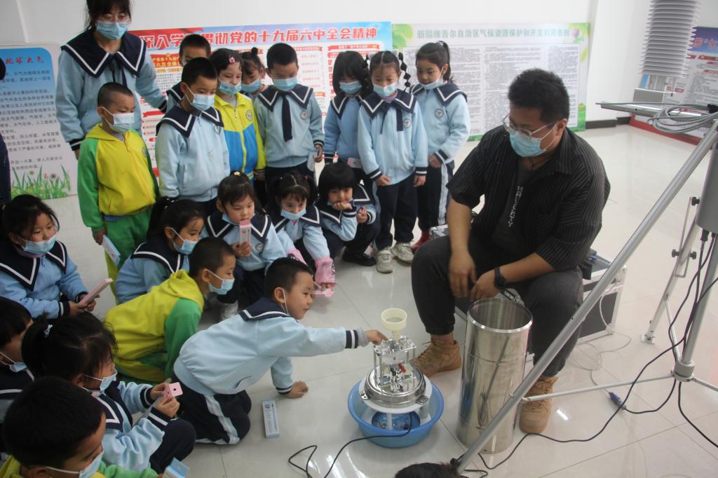3月23日是第62個“世界氣象日”,拜城縣氣象局開展了主題為“早預警 早行動 氣象水文氣候信息助力防災減災”的氣象科普宣傳活動,縣幸福幼兒園30余名小朋友走進氣象科普基地,現場聆聽講解員講解氣象知識,為小朋友們奉上了一堂生動有趣的氣象科普課。