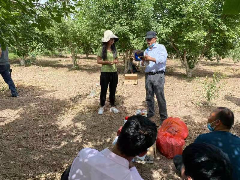 5月28日,由廣東援疆工作前方指揮部和喀什地區科技局主辦,廣東援疆駐伽師縣工作隊和伽師縣科技局(科協),新疆田生苗農林牧技術服務有限公司共同打造的英買里鄉英買里村新梅科技示范園迎來了第二次田間地頭送科技系列活動,本次活動聘請安徽農業大學付強教授進行田間地頭授課。