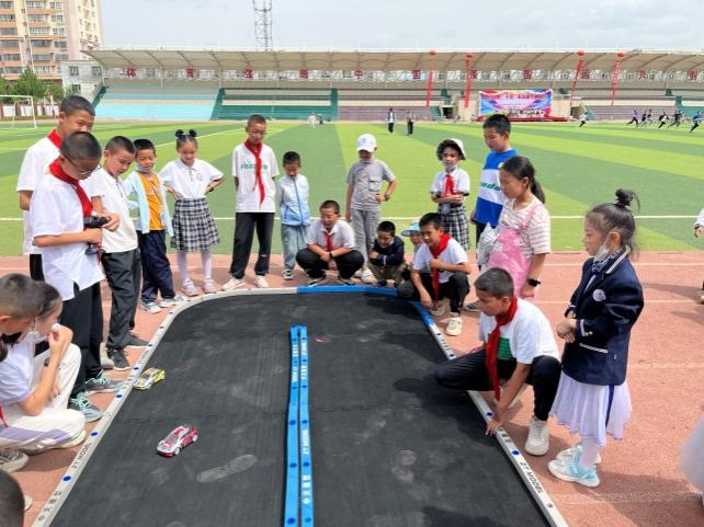 車(chē)模社團(tuán)的學(xué)生正在老師的帶領(lǐng)下,向大家展示了太陽(yáng)能小汽車(chē),橡皮筋作動(dòng)力的小車(chē),大智能無(wú)人車(chē)等。孩子們的興趣都很高漲,爭(zhēng)先恐后地報(bào)名想要自己嘗試讓小車(chē)動(dòng)起來(lái),將整個(gè)科技節(jié)的活動(dòng)推向了高潮。