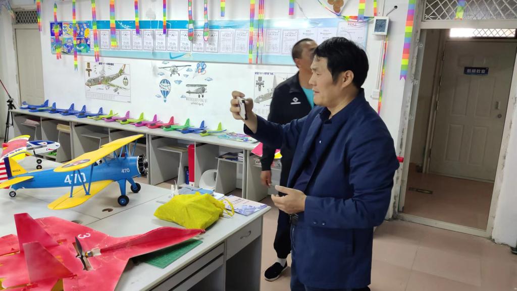 最后,宋老師到沙灣市東灣鎮(zhèn)中心學(xué)校航模教室參觀,同時(shí)在航模的制作和遙控飛機(jī)的飛行方面給予指導(dǎo)。