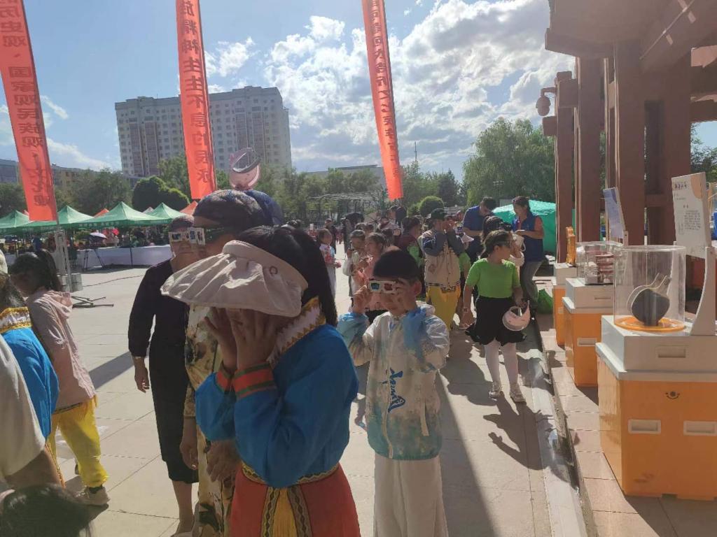 在第三十五屆阿肯阿依特斯文化旅游節的會場上,托里縣科協工作人員開設了科技展,吸引了現場的各族群眾駐足觀看。大家戴上眼鏡觀看野生動物保護、星座、防災減災等三維圖,小朋友們興高采烈地玩著無皮鼓、靜電乒乓等新奇有趣的科技產品。