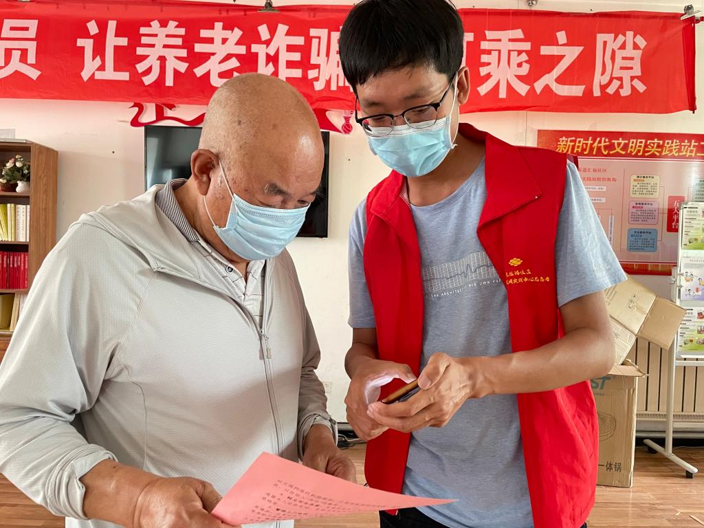 科普志愿者張帥:“叔叔您好,天上不會餡餅,不要接聽陌生電話,不要點擊陌生的網(wǎng)址,一定要守好自己的養(yǎng)老錢,以免上當受騙。”活動現(xiàn)場,身穿紅馬甲的志愿者們通過發(fā)放養(yǎng)老詐騙宣傳單、講解防詐騙案例、推廣國家反詐中心APP等多種形式,開展防詐騙宣傳,講解如何幫助老年人提高法治意識和識騙防騙能力,最大限度地維護老年人的合法權(quán)益。