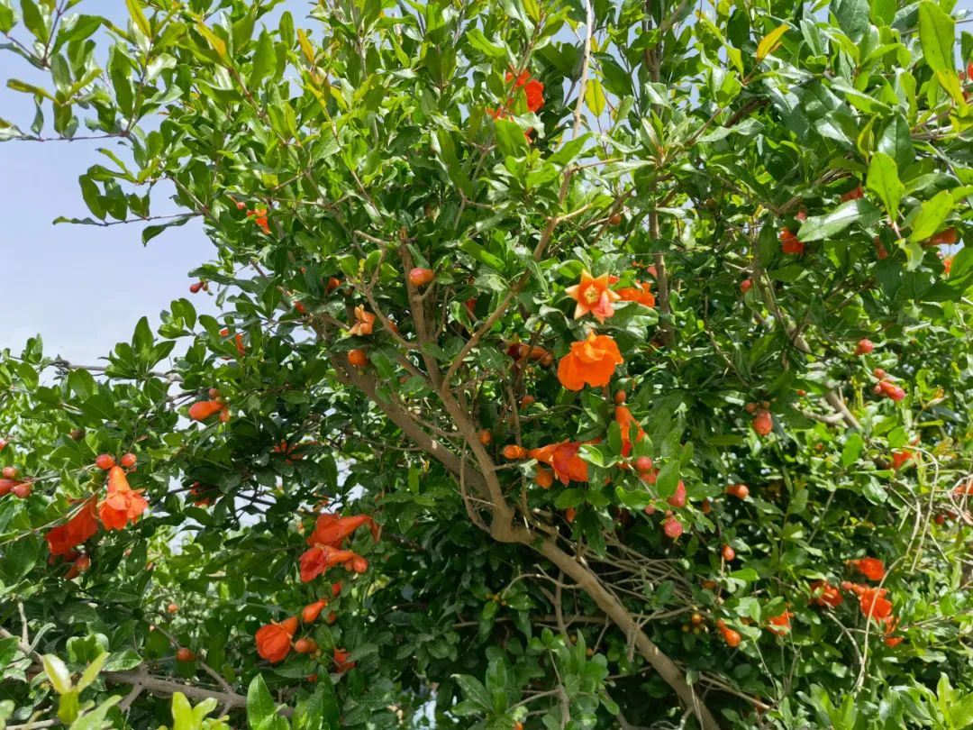 5月24日,在葉城縣伯西熱克鄉(xiāng)托萬歐壤村的石榴風(fēng)情園里,石榴花已紅艷點(diǎn)點(diǎn),好似燃燒在枝頭的簇簇火焰,每年石榴花開和石榴成熟的季節(jié),是石榴風(fēng)情園最忙的時候,隨著石榴花進(jìn)入盛花期,游客也逐漸增多,現(xiàn)在每天能接待游客一兩百人,周末游客數(shù)量更多。