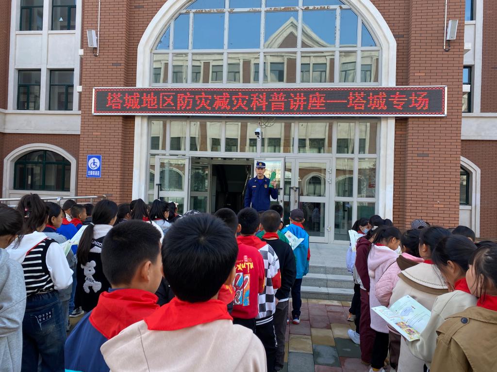 為了進一步宣傳普及防災減災、自救自護知識,增強廣大師生的災害風險防范意識,2023年10月16日下午,塔城地、市科協聯合塔城地區消防救援大隊來到了塔城市第四小學,開展主題為“共同打造有韌性的未來”國際減災日“安全進校園”科普教育活動。