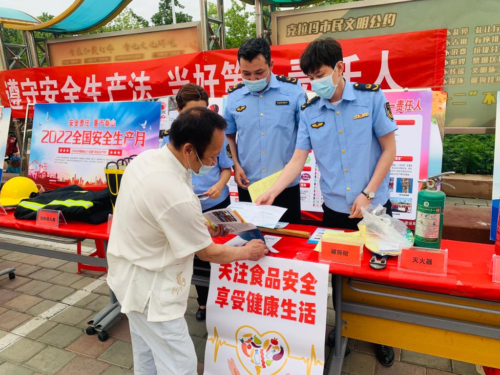 6月16日,克拉瑪依區昆侖路街道南苑社區科普志愿服務隊開展“全國安全生產月”科普宣傳活動。此次活動圍繞“遵守安全生產法,當好第一責任人”這一主題,向轄區居民和商戶大力宣傳安全生產知識,傳授防范安全事故技能,進一步提高大家的安全生產意識。