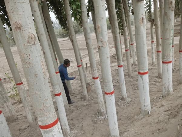 為了更好地科學管理樹木安全越冬,減少樹木病蟲害發生,民豐縣若克雅鄉博斯坦村對管轄區所有的路生態林林帶樹木進行了刷白。經過刷白的行道樹,不但能有效防止樹干遭受害蟲侵害,而且還能為樹木起到很好的保暖作用。