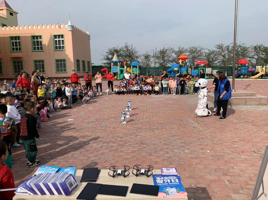 活動中,工作人員向小朋友們展示了智能機器人和無人機表演,為小朋友們打開了“科學世界”的大門。小朋友們與機器人互動,點燃了探索機器人的激情與興趣,熱愛科學的種子在幼兒心中開始發芽,為培養幼兒科學探索的精神,打下了堅實的基礎。