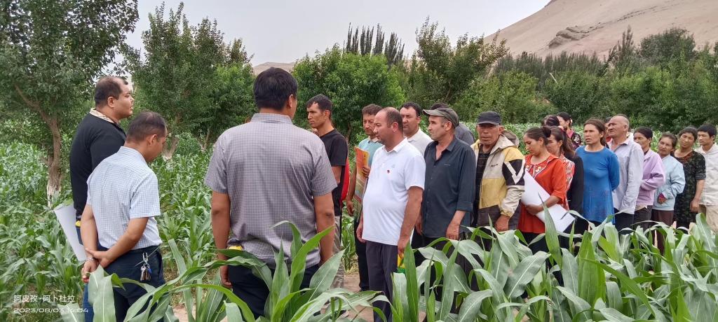 8月3日,洛浦縣科技志愿者在阿其克鄉(xiāng)央塔克勒克村,組織村民開展玉米田間病蟲害防治和施肥管理培訓(xùn)。活動(dòng)中,科技志愿者如則托合提重點(diǎn)圍繞玉米的品種選擇、播種時(shí)期、播種密度、栽培方式、合理施肥、雜草防除、病蟲害綠色防控和收獲等關(guān)鍵環(huán)節(jié)進(jìn)行講解,并逐一解答種植戶在生產(chǎn)中遇到的技術(shù)難題。