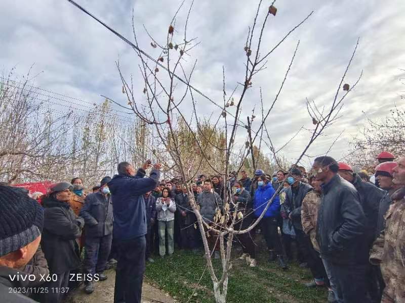 疏附縣科協特邀托克遜縣林草局林果業研究開發中心高級農藝師白克力·塔西鐵木爾,圍繞杏樹生長周期管理的特點,針對村民種植技術匱乏等問題,從病蟲害防治、科學施肥管理、杏樹?;ū9?、合理灌溉等方面進行了詳細的講解,尤其是杏樹的修剪,果樹的修剪是果樹生長中不可缺少的部分,冬季修剪是果樹一年管理中極其重要的一個技術環節,合理的修剪,能調節果樹的吸收營養力度與生殖生長的關系,確定果樹的負載量,延長果樹衰老及果樹壽命。