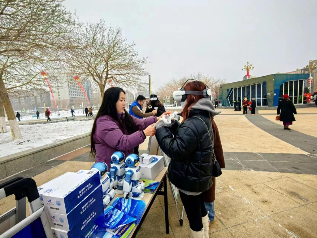 機器人“炫技”表演舞蹈秀、無人機、VR眼鏡等吸引了不少居民群眾前來觀看體驗,在工作人員的指導下,群眾有序排隊體驗、動手操作,現場氣氛熱烈,科普活動為冰雪風情節奉上“科普大餐”的同時也為活動添彩。