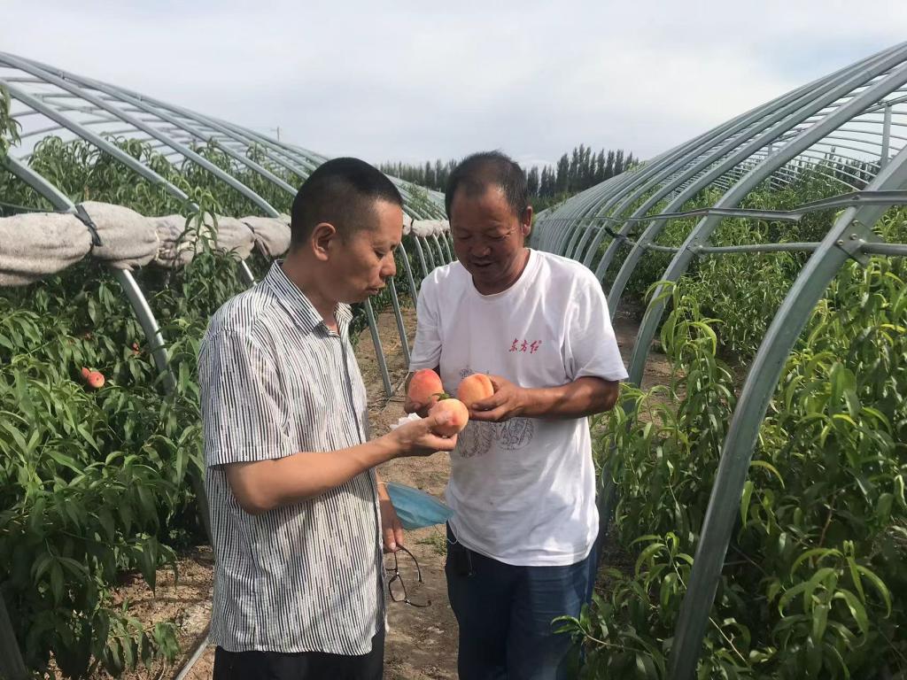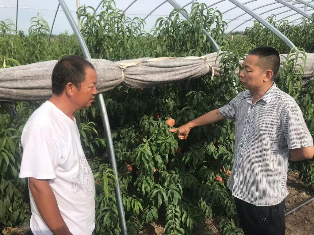 在調研的過程中,農場負責人趙志剛介紹,甘紅家庭農場2017年注冊成立,五年來他不斷探索,選擇5個(蜜桃系列)栽培品種及科學種植模式,按照產品線成熟時間(為6月25日~8月30日),進行不同品種的栽培結構調整,分為大棚種植、大田種植,今年又投資十幾萬購買電動卷簾門,降低了天氣對果園造成的經濟損失,他對自己農場今年的發展和收益表示滿意。他向大家介紹了農場運營情況時,提到科協農業技術專業培訓給他帶來的巨大收益。