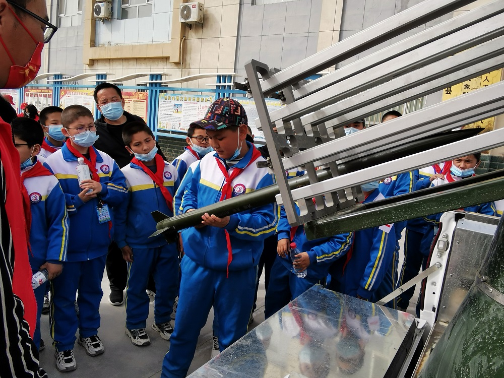 若羌縣中學的老師帶領著學生整齊一致的來到氣象局,學生們第一眼就被院內的各種儀器和科普展品所吸引,大家都迫不及待的想上前操作展示一下。在老師的帶領下和工作人員的講解下,學生們參觀學習了風向風速傳感器、翻斗雨量傳感器、日照傳感器、地溫傳感器、降雨天氣現象儀、稱重降水傳感器、探空雷達、探空氣球等豐富的儀器。現場學生在工作人員的指導下還現場學習操作了“人工影響天氣車載火箭發射裝置”的模型。
