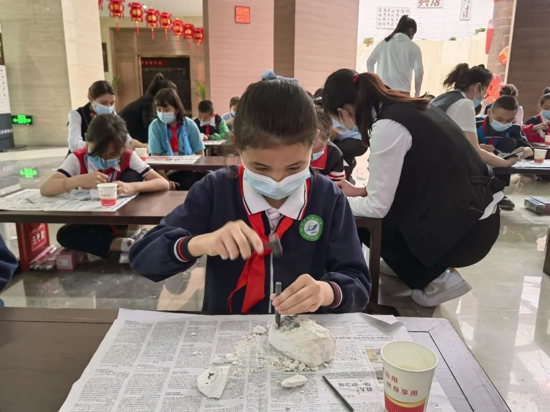 在博物館一樓大廳進行的“考古盲盒”社教活動吸引了眾多學生積極參與。活動中,學生們在社教老師的指導下,拿著小鏟子、小刷子,模擬著考古隊員考古的過程,通過努力,各種各樣的“寶貝”一一呈現了出來,大家體驗到了付出帶來的成就感。