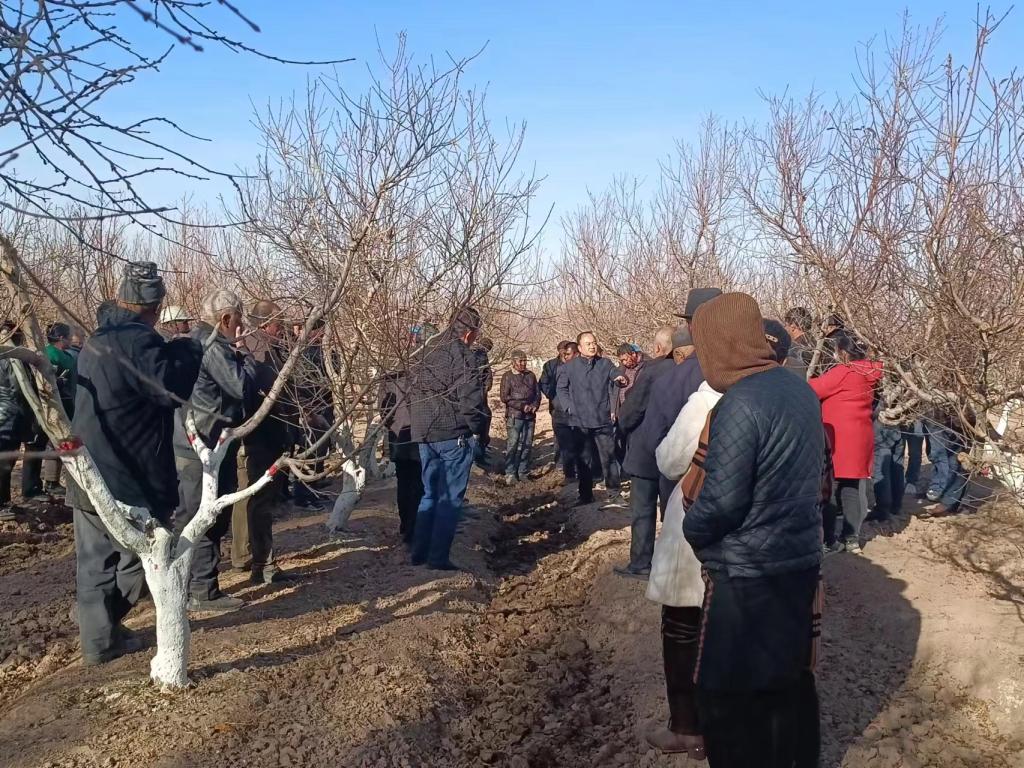 當(dāng)前,正值冬季果園管理的關(guān)鍵時期,為進(jìn)一步提升果園標(biāo)準(zhǔn)化管理水平,促進(jìn)桃產(chǎn)業(yè)提質(zhì)增效,增加果農(nóng)收入,11月26日,疏附縣科技局、疏附縣科協(xié)邀請托克遜縣林草局林果業(yè)研究開發(fā)中心高級農(nóng)藝師白克力·塔西鐵木爾,在蘭干鎮(zhèn)7村開展桃實用技術(shù)培訓(xùn),蘭干鎮(zhèn)部分果業(yè)專業(yè)合作社負(fù)責(zé)人、種果大戶、村干部、科技特派員、鄉(xiāng)土人才等150余人參加培訓(xùn)。