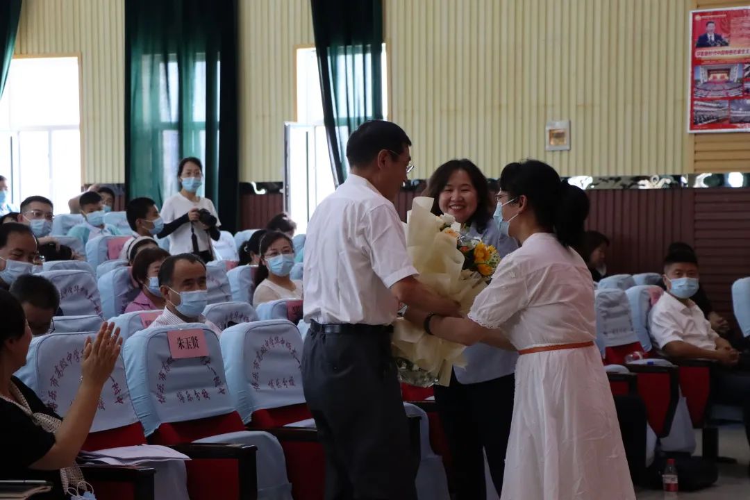 最后,博州黨委常委、副州長阿爾特再次代表全體師生為朱玉賢院士表達感謝,博樂市高級中學華中師大一附中博樂分校校黨委書記劉環(huán)環(huán)作為代表為院士獻花。