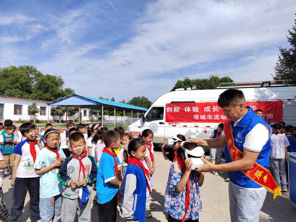 活動現場,塔城市科普志愿者通過科普大篷車開展科普知識宣傳,發放科普知識手冊,利用流動科技館為學生帶去了“國家一級保護動物”“氣候變暖與自然災害”“星座科普知識”等三維立體科普展板、VR眼鏡體驗,展示整齊劃一、引人眼球的仿真機器人舞蹈表演等精彩科技展具,讓學生動手實踐操作,真實地感受到前沿科技的無限魅力。