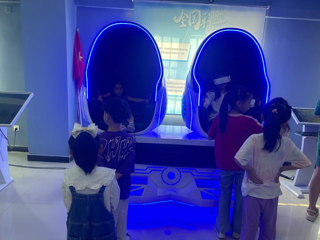 繪畫活動結束后,孩子們在講解員的帶領下,有序參觀克孜勒村科普館,體驗VR“視”界、地震模擬系統等項目,近距離感受科技魅力,學習科學知識。