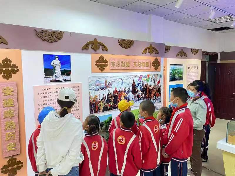 在東歸民俗館里,大家每到一處,通過鞏乃斯鎮轄區模型,使學生們清晰地看出鞏乃斯鎮的全貌;通過一幅幅珍貴的照片,為學生們展現了鞏乃斯獨有的魅力;通過一塊塊動人的展板,使學生們深刻地了解了東歸文化的歷史變遷。