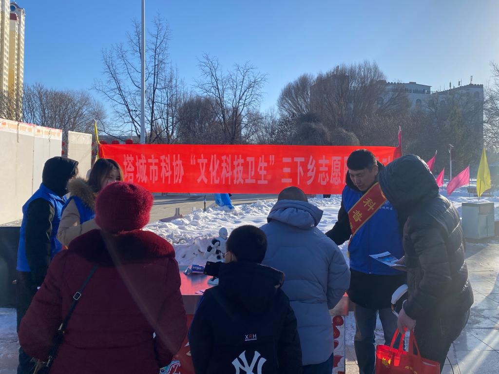 1月22日,由塔城市人民政府主辦、市委宣傳部、商工信局等單位承辦的2024年“民俗中的塔城”年貨大集啟動儀式在塔城市音樂廣場拉開帷幕。為了營造濃厚的科普文化氛圍,進一步豐富群眾日常科普知識,普及健康知識,引導群眾樹立正確的健康觀,養成健康文明的生活方式。塔城市科協走進年貨現場開展“文化科技衛生”三下鄉志愿服務活動。