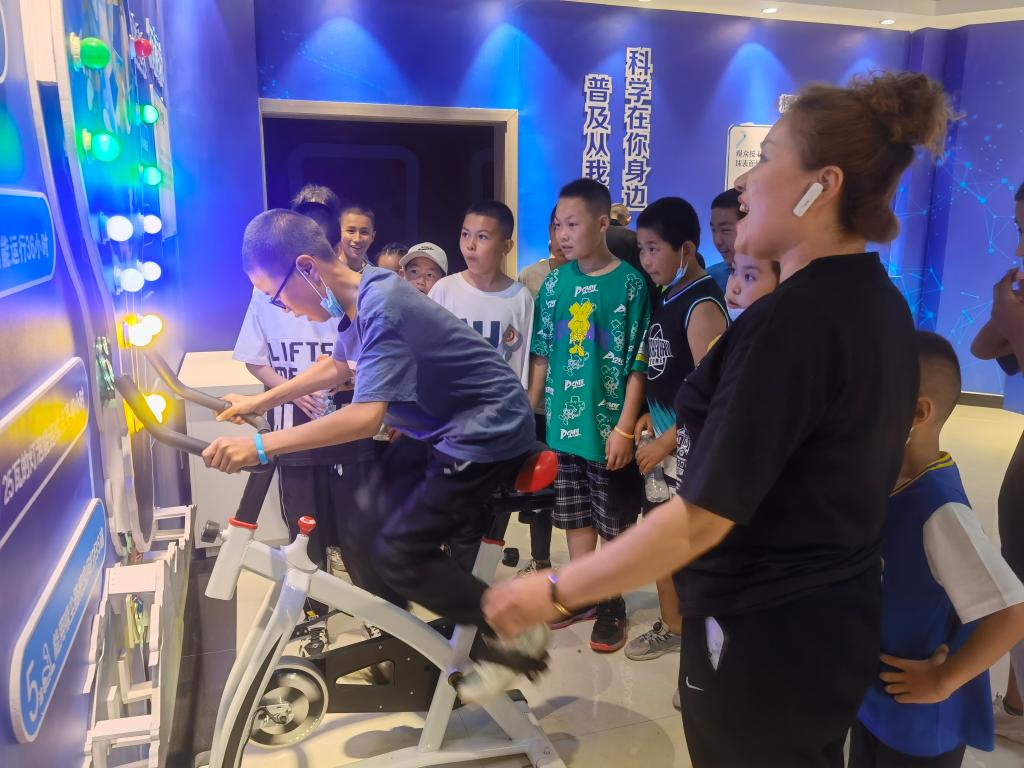“我喜歡玩蹬車發(fā)電,只要你蹬得夠起勁,就能把動(dòng)能轉(zhuǎn)化為電能,點(diǎn)亮面前盞盞小燈,長(zhǎng)大以后,我也想當(dāng)一名科學(xué)家,因?yàn)榭萍甲屔钭兊酶篮谩!毙W(xué)生劉璟春高興地說(shuō)。