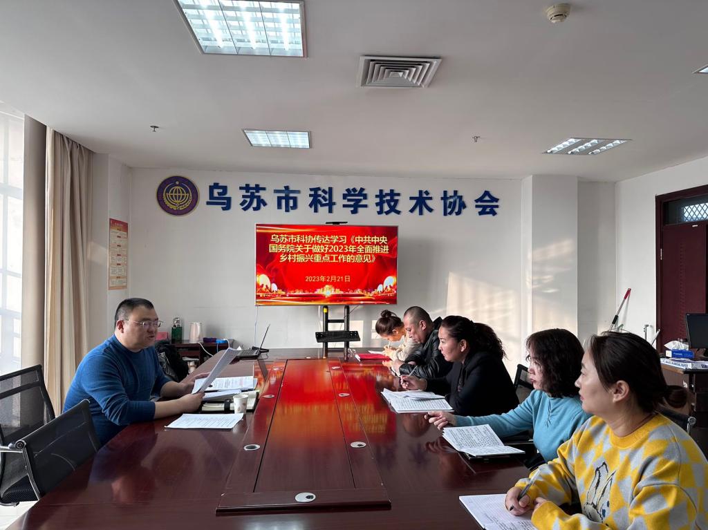 2023年中央一號文件發布,釋放了重農強農的強烈信號,在抓好糧食安全、加強農業基礎設施建設、強化農業科技和裝備支撐等關鍵領域,開辟了新思路,為守底線、促振興、強保障,為全面推進鄉村振興指明了方向。2月21日,烏蘇市科協組織全體干部認真學習領會中央一號文件精神,為鄉村振興積蓄后勁。