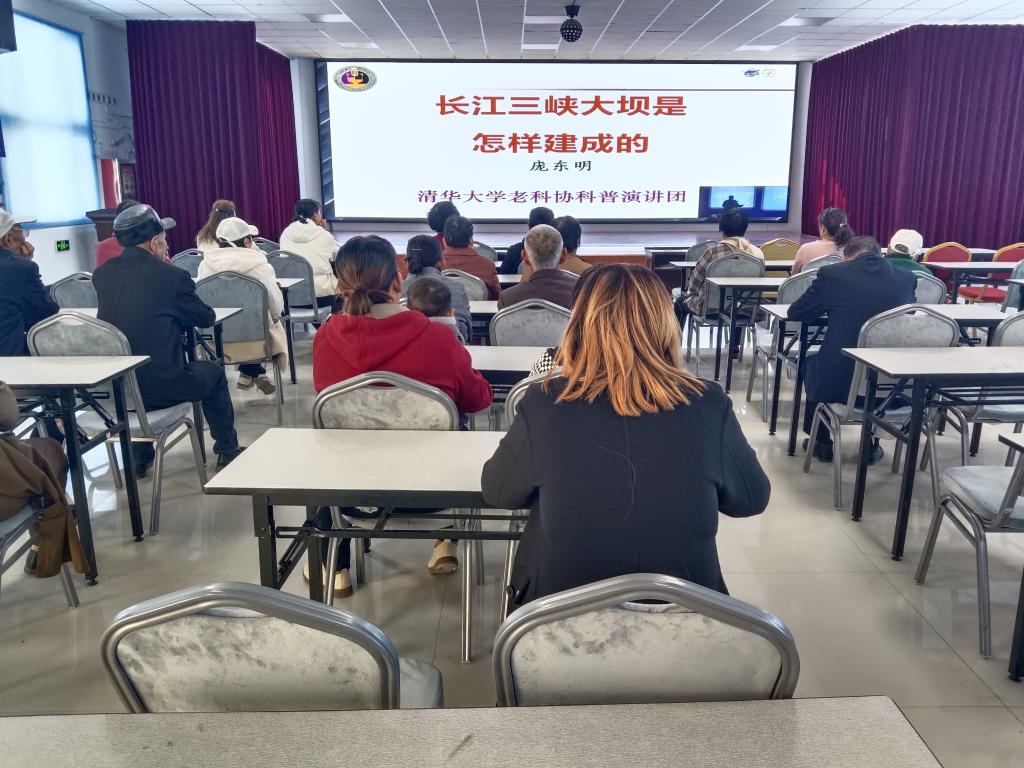 10月19日上午,新疆老科協(xié)老年科技大學(xué)第三學(xué)年第二期開(kāi)課,新疆老科協(xié)老年科技大學(xué)特邀中國(guó)科普?qǐng)?bào)告團(tuán)成員,清華大學(xué)水利水電工程系高級(jí)實(shí)驗(yàn)師龐東明教授授課,縣科協(xié)組織尉犁鎮(zhèn)和平社區(qū)轄區(qū)離退休老干部、居民集中觀看《三峽大壩是怎樣建成的》科普講座活動(dòng)。