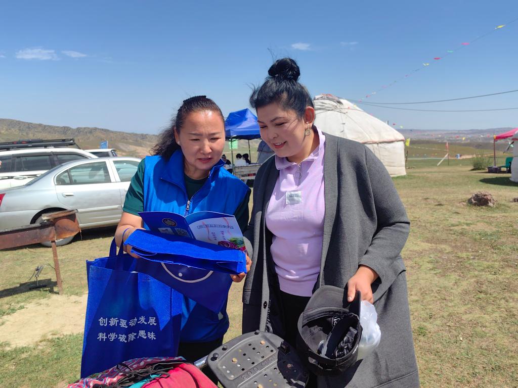 志愿者們走進牧民家里,為牧民發放食品安全、防震減災、科普健康知識宣傳手冊和科普圍裙、科普環保袋等科普宣傳品,為前來旅游觀光的游客以及本地群眾帶來了“科普大餐”,受到大家的一致好評。