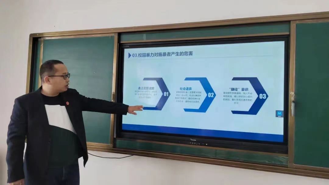 本次普法講座,讓學生們了解了校園欺凌、校園暴力等相關法律知識,進一步提高了在校學生的安全防范意識和自我保護意識,為防范校園暴力和欺凌奠定了基礎。用深刻的教訓警醒他們,要養成健康的生活習慣、培養良好的法治思維、樹立積極向上的人生觀和價值觀,自覺抵制不良誘惑,增強自我防范意識,爭做新時代的好少年。