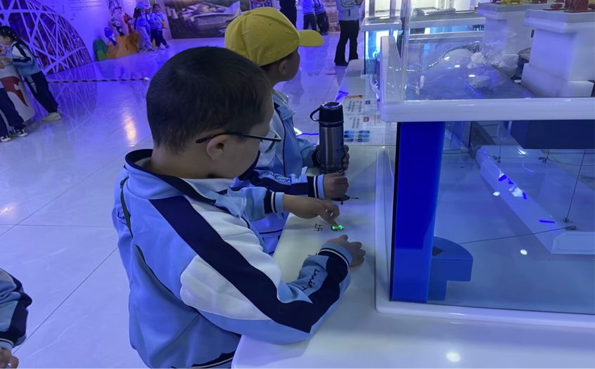 館內豐富而有趣的展品深深地吸引著孩子們,整個參觀過程井然有序。孩子們帶著許多的小問號認真觀察、積極體驗、愉快操作,從中感知和明白了許多知識并感受到科技帶來的奇妙。