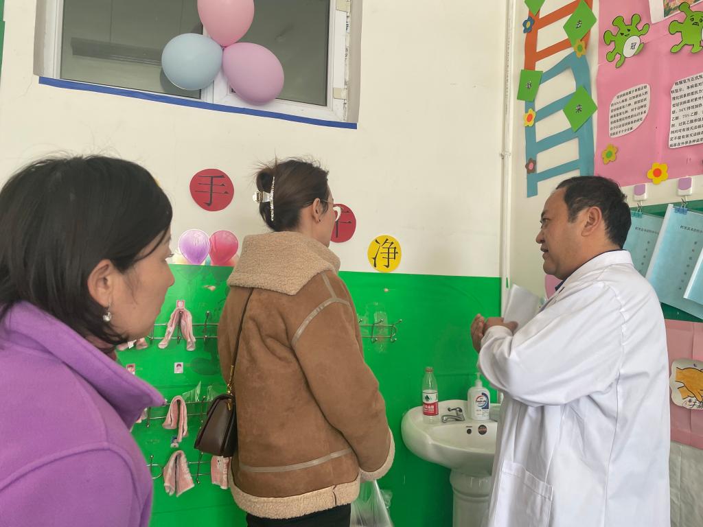 甲流病毒通過飛沫經呼吸道傳播,主要通過感染者咳嗽和打噴嚏的方式在人群中傳播,故在學校等人群密集的環境中更容易發生感染。婦幼保健中心宣講人員向幼兒園負責人及老師們強調避免人群聚集,勤洗手,多通風等措施的重要性,并且查看教室及宿舍衛生環境,提出專業衛生指導意見。