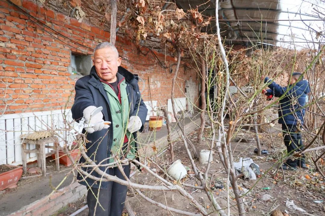 在4050設施農業基地種植大棚十幾年的葛欽,每年進入冬季都要忙著照顧棚內的“寶貝”,修剪果樹、清理農殘,為新一年的豐收做準備。“我從2019年開始打造農業科普基地,現在來我這里交流經驗的人特別多。目前基地有17座大棚,占地2畝多,種植的有桃、杏子、蘋果、葡萄、櫻桃、無花果、橘子、獼猴桃等不同品種的水果。”果農葛欽說。