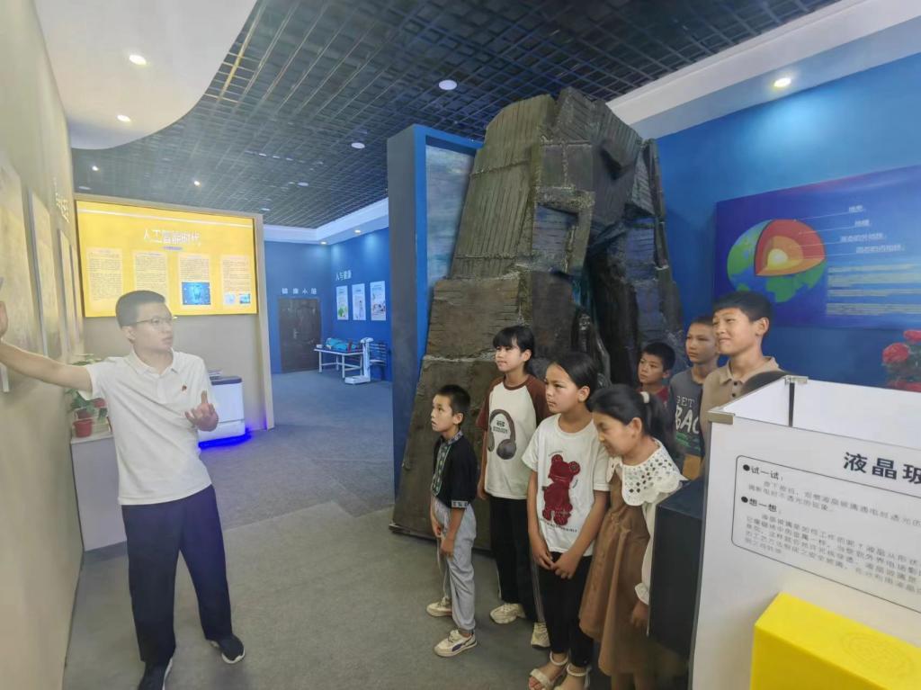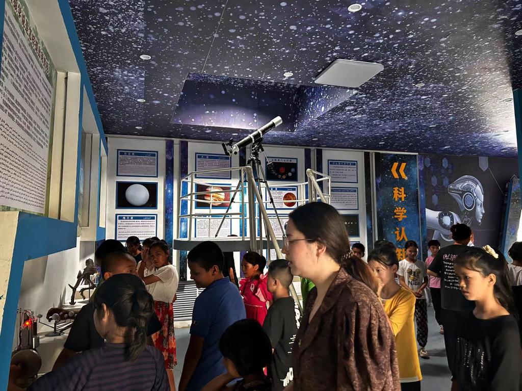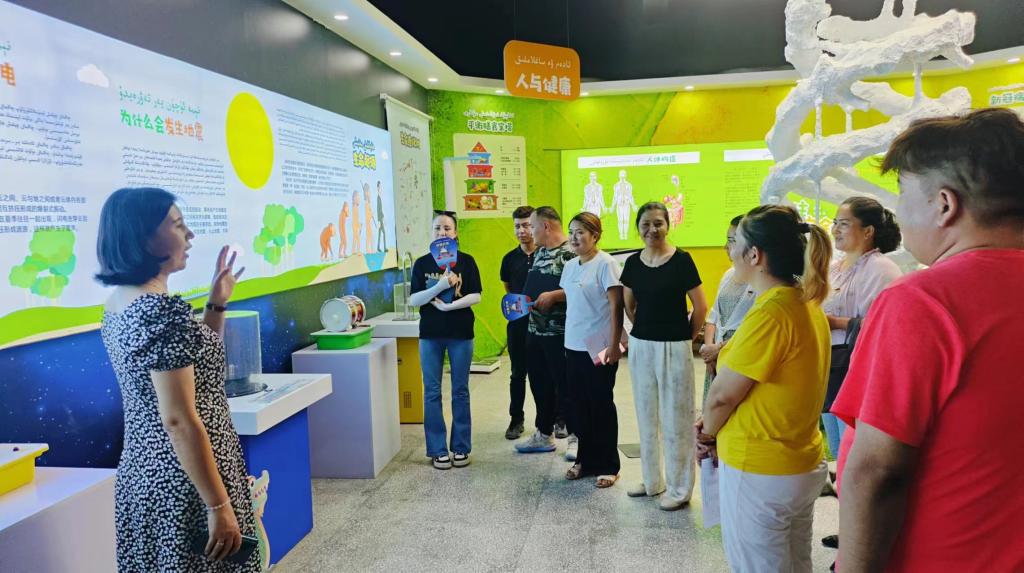 在哈爾巴克鄉吾夏克鐵熱克村科普館,縣第四小學學生在講解員的帶領下,對科普館“宇宙與地球、人類與生命、人工智能AR”等展區進行參觀,被神奇的科技力量所吸引,感受到了科技的魅力。