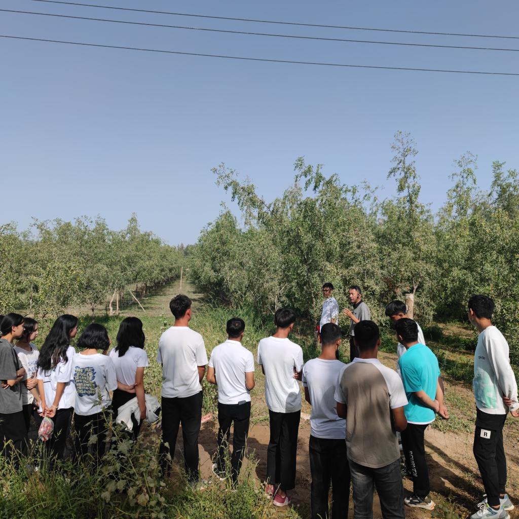 在有機紅棗種植示范園中,同學們聆聽了有機紅棗的種植管理、產業現狀及發展前景,了解到鄉黨委按照“政策扶持、規范管理、科技支撐、企業帶動、品牌營銷”的發展思路,對紅棗基地改造升級和提質增效,通過產業化集聚、規模化生產,推進特色產業發展,助力群眾增收致富。