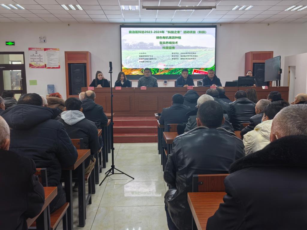 1月31日,自治區(qū)科協(xié)2023-2024年“科技之冬”活動項目—“綠色有機果蔬種植實用技術(shù)培訓”,“畜禽養(yǎng)殖技術(shù)培訓”,科普宣傳培訓專家組一行8人深入策勒縣策勒鄉(xiāng)瑪合瑪勒村、達瑪溝鄉(xiāng)古勒鐵日干村開展“科技之冬”培訓活動。2個鄉(xiāng)鎮(zhèn)36個村的設(shè)施農(nóng)業(yè)蔬菜種植戶、林果種植戶、護林員等農(nóng)民群眾1000余人參加培訓。