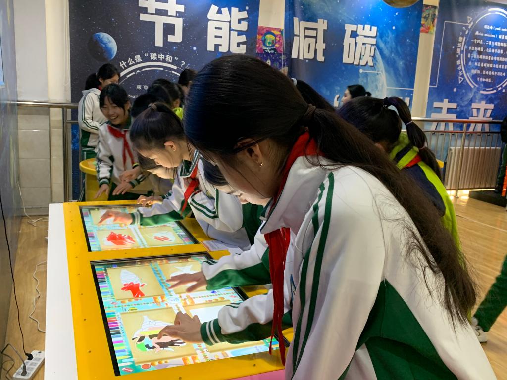 儀式結束后,在科技講解員的帶領下,學生帶著興奮與好奇的心情分批次參觀科技館。一個個科技元素滿滿的展品呈現在學生眼前,大家紛紛流露出一雙雙探尋的目光,零距離地感受著科技的神奇。