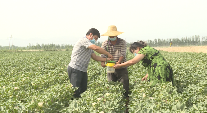 技術人員說:“受高溫天氣影響,我縣棉田受到不同程度的病蟲害,尤其是蚜蟲,建議棉農針對蚜蟲發生的程度以及地塊的分布特點,采用不同的方式進行防治。另外,打藥時不能用無人機打藥。”