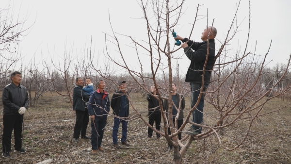額敏縣加爾布拉克酒花村村民江國超,有著20多年果樹種植經驗。培訓現場,江國超分別對蘋果樹、蟠桃、梨樹等不同類型果樹的春季整體修剪進行實操修剪并現場講解。