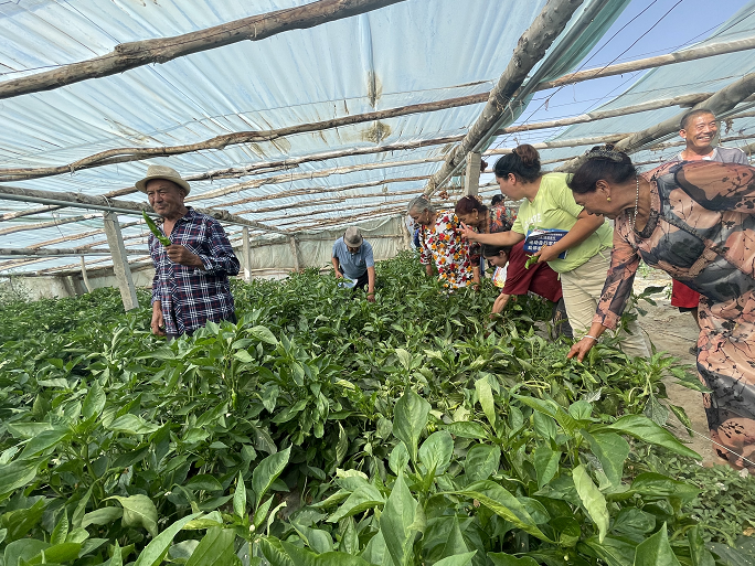 巴潤哈爾莫敦鎮(zhèn)哈爾烏蘇村的王毅是村里的致富帶頭人,是大棚種植能手,是村里的土專家,也是村里的農(nóng)業(yè)科普志愿者,他將村民們聚在自己家溫室大棚里,結(jié)合大暑氣溫高升的特點(diǎn),耐心地向大家講解高溫天氣溫室辣椒種植的技術(shù)要點(diǎn),以及三伏天大棚種植過程中如何預(yù)防人員中暑等科普知識,并在活動結(jié)束后邀請大家采摘辣椒。