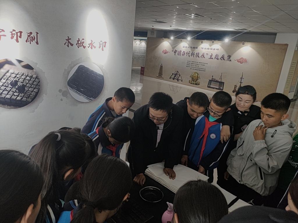 參觀“中國(guó)古代科技展”中,同學(xué)們了解了我國(guó)先民在天文、建筑、軍事、水利等領(lǐng)域取得成就,在互動(dòng)體驗(yàn)中認(rèn)識(shí)了榫卯結(jié)構(gòu)和四大發(fā)明活字印刷,感受古人智慧開闊視野,樹立了民族自豪感。