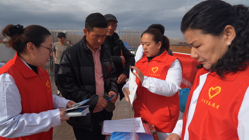 居民胡熱拉依:“志愿者們給我們科普了很多衛(wèi)生健康知識,我也會把這些知識講給親朋好友和身邊的人聽?!?/p>