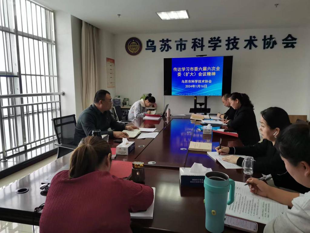 1月16日,烏蘇市科協召開會議,傳達學習中共烏蘇市委六屆六次全委(擴大)會議精神,安排部署烏蘇市科協2024年重點工作,烏蘇市科協黨組書記劉彥超主持會議。