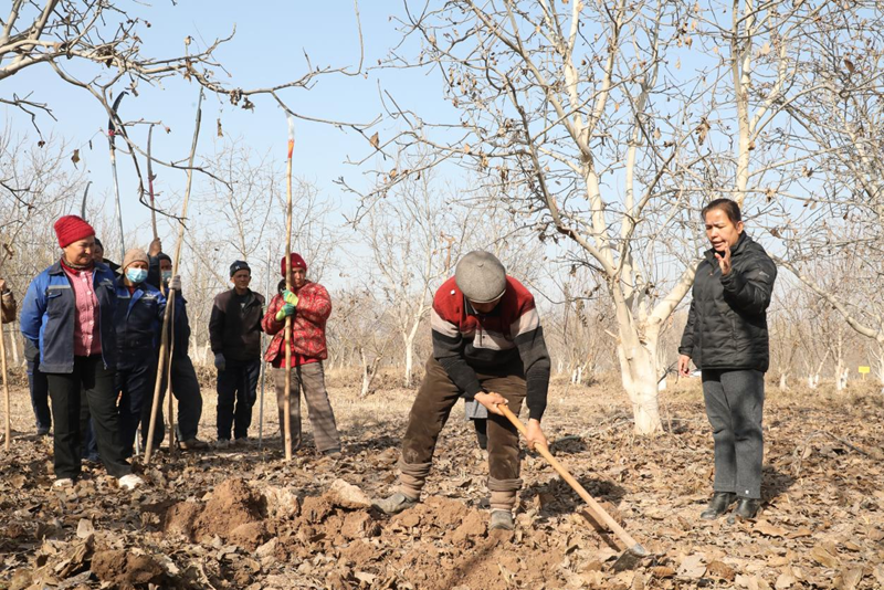 近年來,疏附縣持續發揮科技小院優勢,用先進的科學技術和種植模式向林果要效益,持續帶動林果業提質增效、農民增收。11月27日,在疏附縣站敏鄉伊尼薩克村的核桃園內,農業技術人員就核桃修剪、施肥及病蟲害防治等方面進行培訓。技術人員一邊講解一邊示范,對核桃修剪、施肥的原理、方法及注意事項做了細致演示,同時對村民的實踐操作進行詳細科學的指導。
