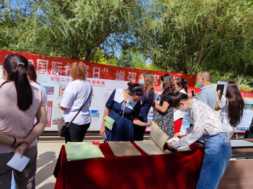 此外,活動現(xiàn)場布置8塊專題展板,向各族干部職工展示了拜城從城市變遷、鄉(xiāng)村建設(shè)、交通發(fā)展等不同時期的發(fā)展變化,見證人民走上小康路,逐步實現(xiàn)共同富裕的發(fā)展歷程;現(xiàn)場設(shè)置咨詢服務(wù)臺,向干部職工發(fā)放《檔案見證小康路》《檔案法》、反邪教、掃黑除惡、垃圾分類、反邪教、紅色黨史、公民科學(xué)素質(zhì)讀本等宣傳資料及宣傳用品,同時展示3D科普展板、機器人表演等;活動現(xiàn)場邀請干部職工參與檔案征集活動,鼓勵大家提供拜城發(fā)展變遷的資料、圖片、音頻、物件等。