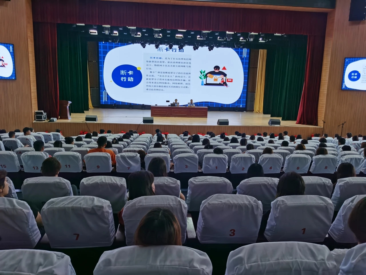 宣傳講座中,反詐民警以大量真實案例為基礎,為師生剖析了常見的詐騙種類,詳細講解了各類詐騙手法、防騙知識,讓全體師生對反詐騙知識學通學透,達到入腦入心的效果。