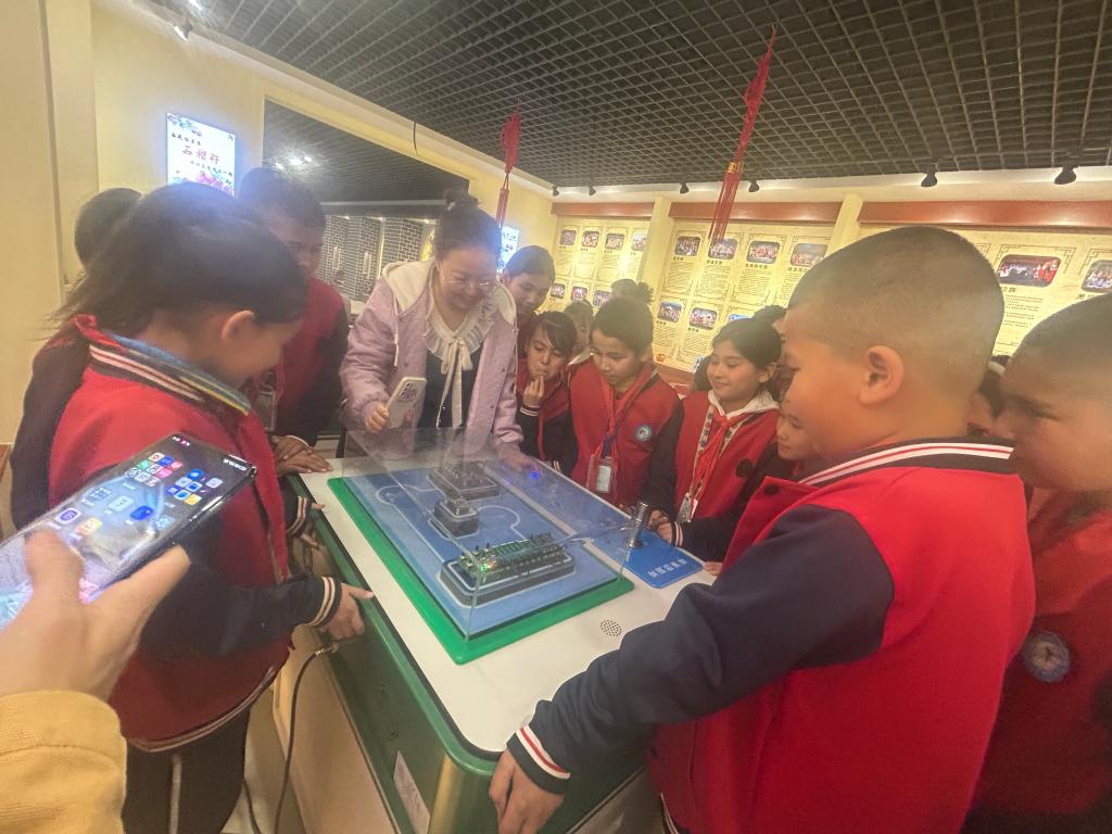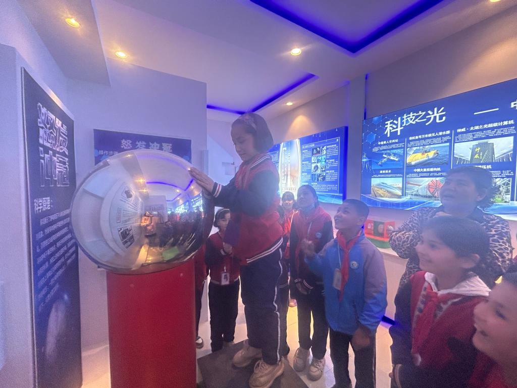 在參觀科普館環(huán)節(jié),學(xué)生有序排著隊(duì),前往群巴克鎮(zhèn)恰先拜村科普館,體驗(yàn)巴州鄉(xiāng)村科普館流動巡展展品及科普館各類有趣的科普體驗(yàn)項(xiàng)目,近距離感受科技魅力,學(xué)習(xí)科學(xué)知識。