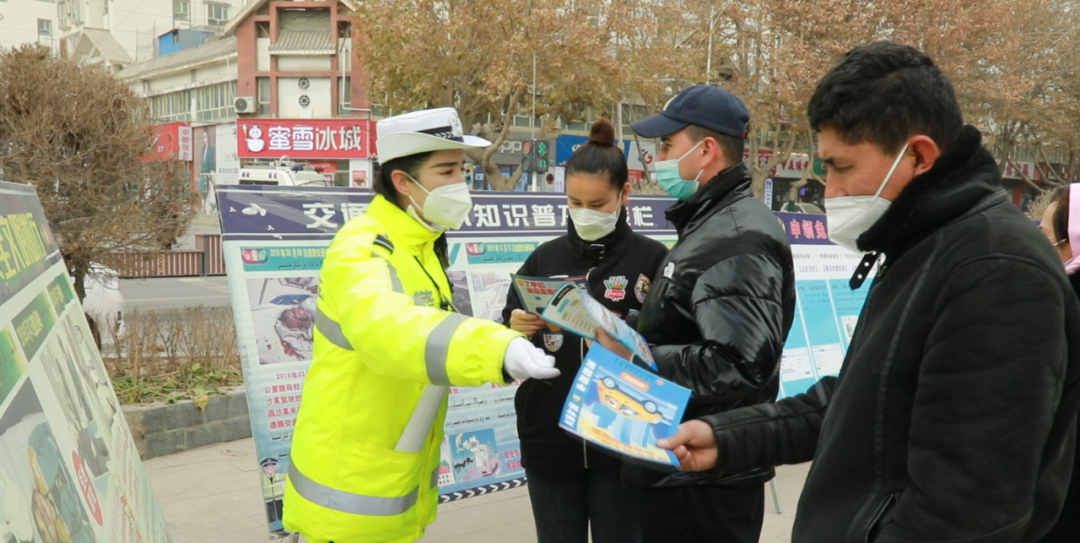 義務宣講員在縣商業街采用搭咨詢臺、擺宣傳板、發宣傳單等形式,向群眾詳細宣講乘坐車輛要系好安全帶、騎乘摩托車、電動車時要佩戴安全頭盔、酒后不開車等交通安全常識及道路交通安全法律法規知識,并耐心為群眾解答有關交通安全知識的各種問題,教育引導群眾樹立文明交通意識和規則意識,文明出行。